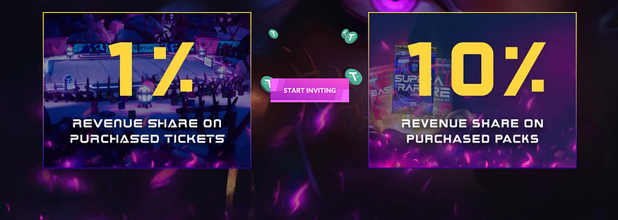 1% revenue share for every ticket bought and used in-game from your invited friends;
