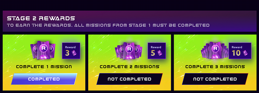 Disclaimer: To claim the rewards from Stage 2, every Mission from Stage 1 must be completed.