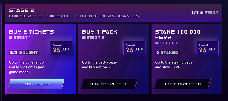 After completing the Stage 1 missions you unlock the ability to earn rewards. Complete up to 3 Stage 2 missions to maximize your rewards!